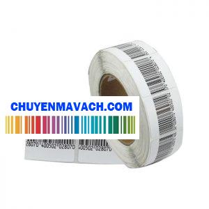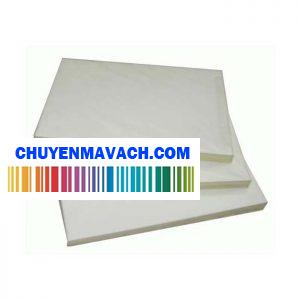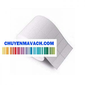 Decal PVC in tem nhãn, mã vạch 50x30mm 2 tem/ hàng, cuộn 50m