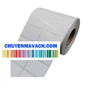 Giấy in mã vạch 1 hàng 2 tem, tem cỡ 50×30 (mm), khổ giấy 103mm, dài 50m (~3.050 tem/cuộn). Là loại giấy decal in chuyển nhiệt gián tiếp nên giấy này cần được in với loại mực in mã vạch chuyên dụng là ribbonhoặc wax-resin.