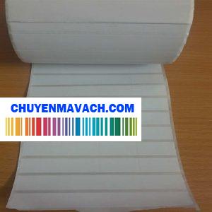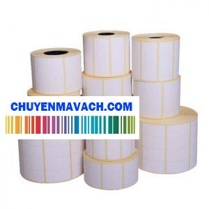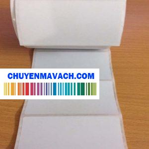 Giấy in mã vạch 1 hàng 2 tem, tem cỡ 50×30 (mm), khổ giấy 103mm, dài 50m (~3.050 tem/cuộn). Là loại giấy decal in chuyển nhiệt gián tiếp nên giấy này cần được in với loại mực in mã vạch chuyên dụng là ribbonhoặc wax-resin.