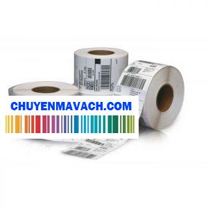 Decal PVC in tem nhãn, mã vạch 50x30mm 2 tem/ hàng, cuộn 50m